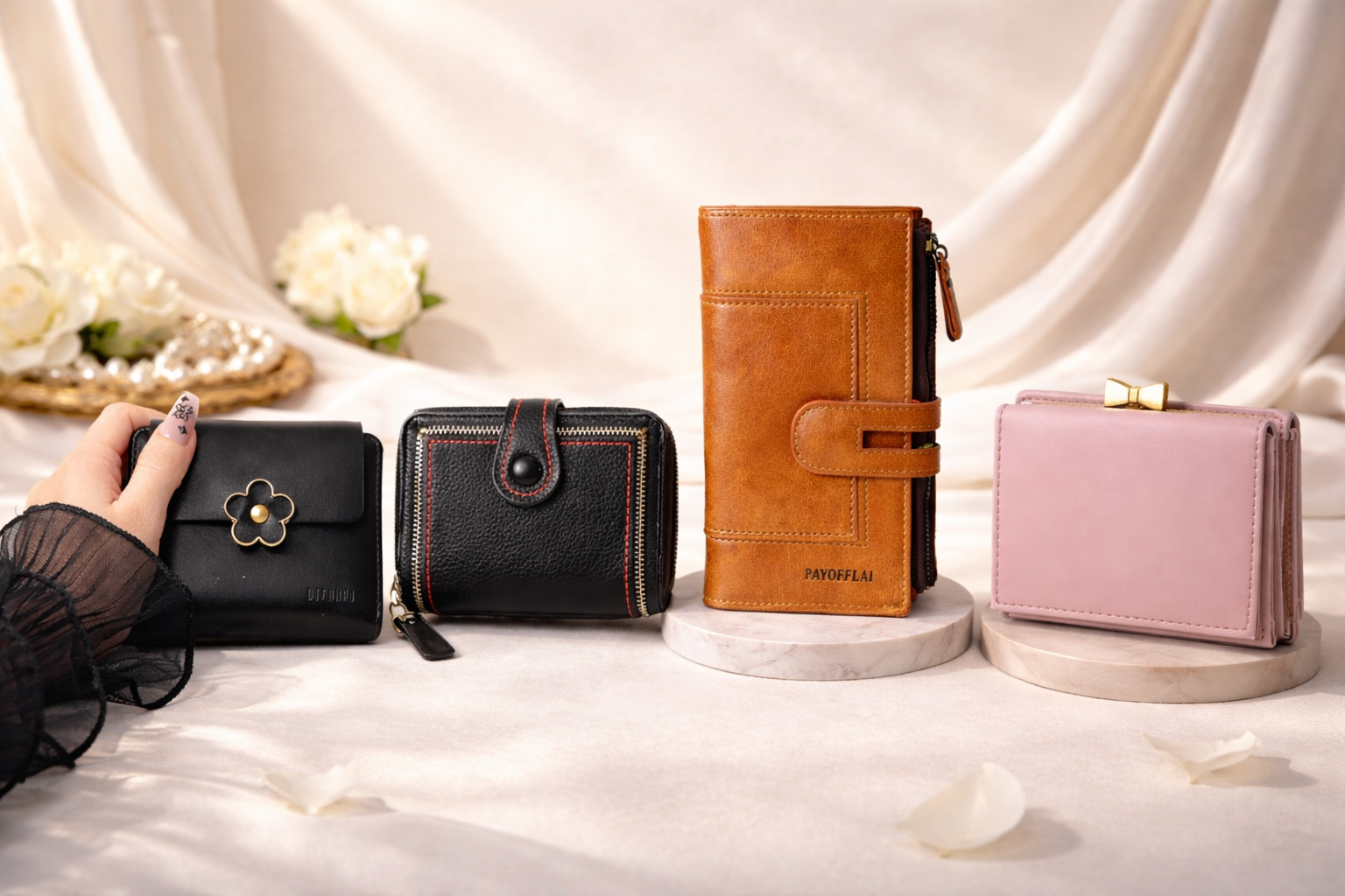 Elegant Floral Snap Leather Wallet – Compact & Stylish Everyday Essential